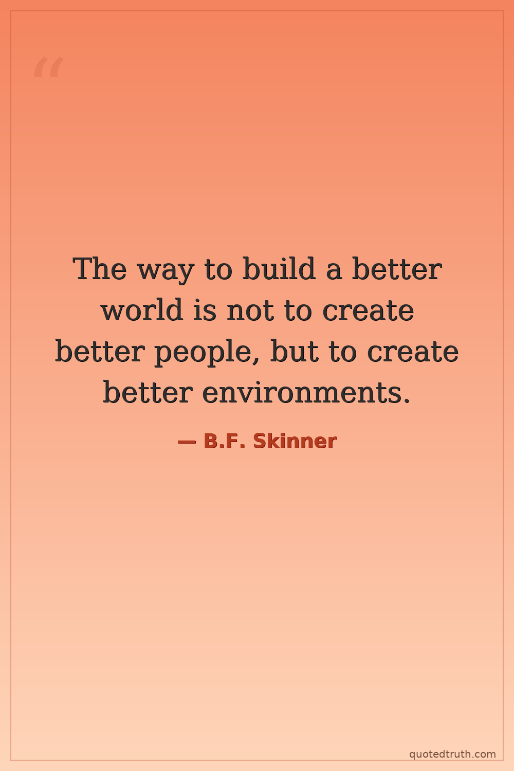 The way to build a better world is not to create better people, but to create better environments.
