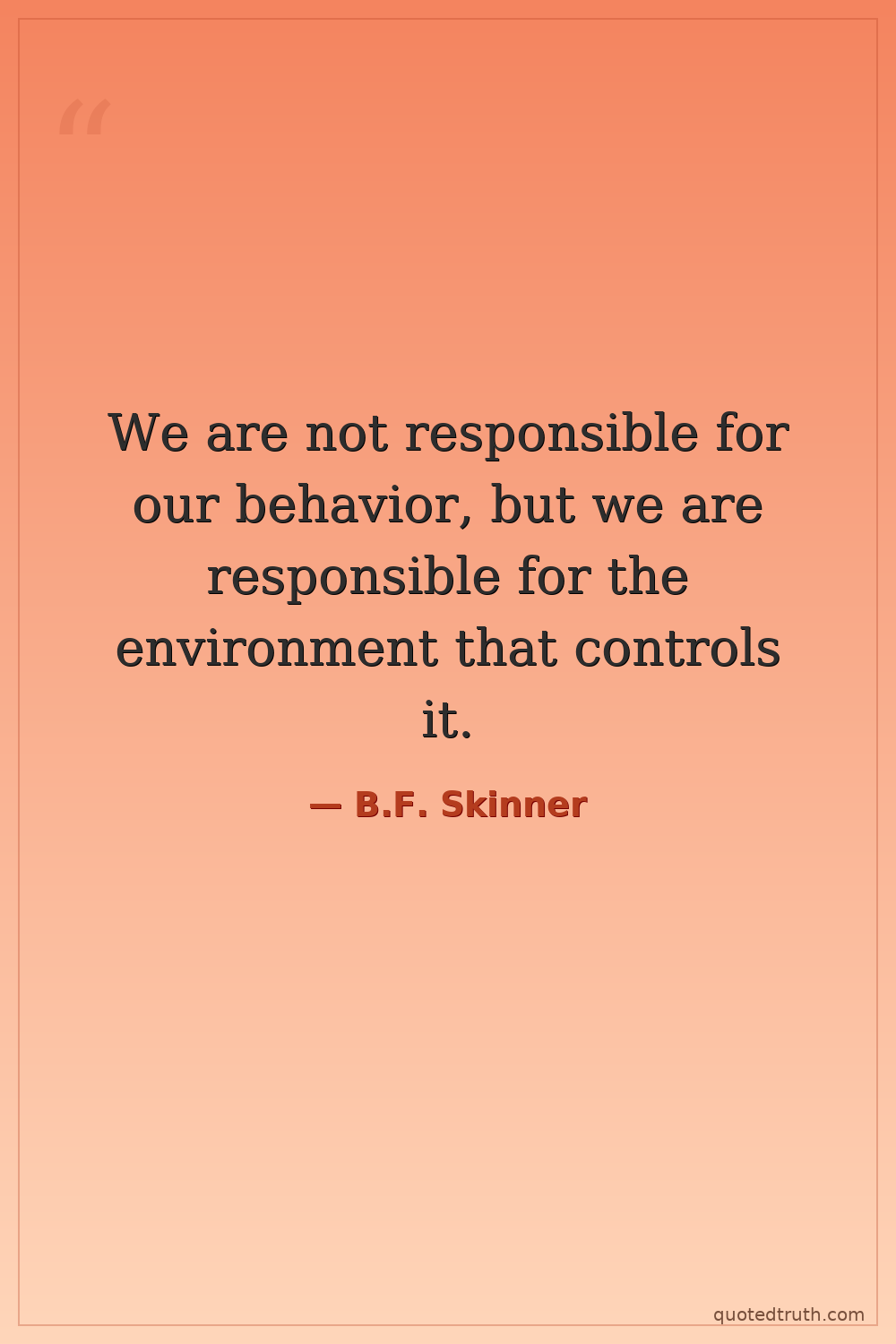 We are not responsible for our behavior, but we are responsible for the environment that controls it.