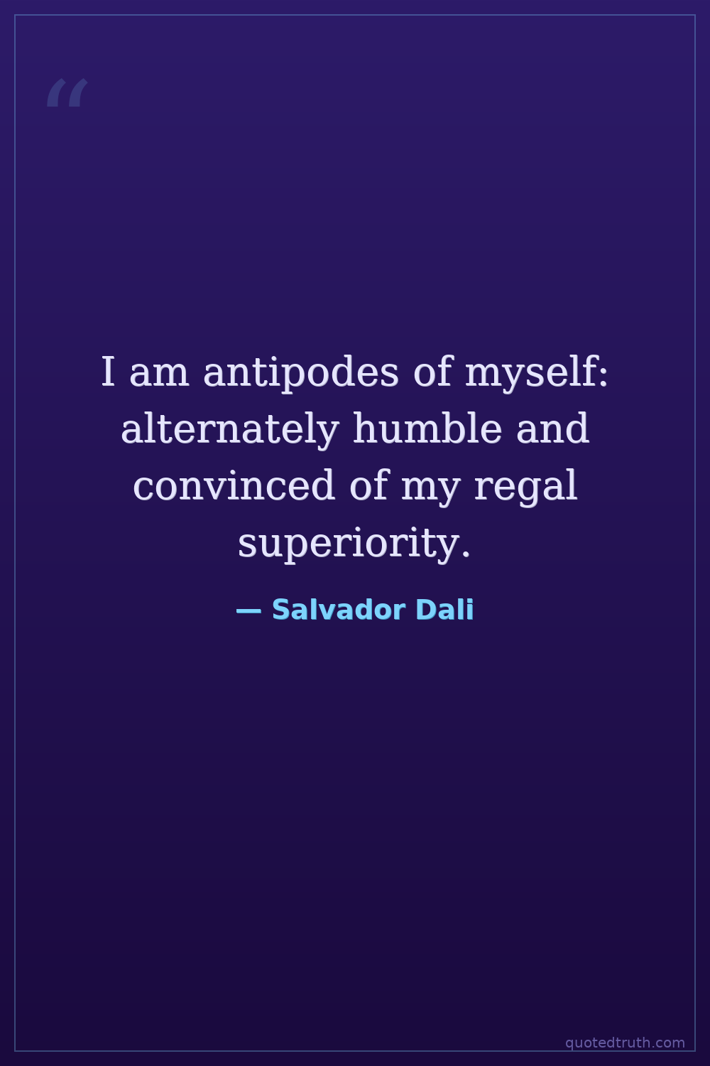 I am antipodes of myself: alternately humble and convinced of my regal superiority.