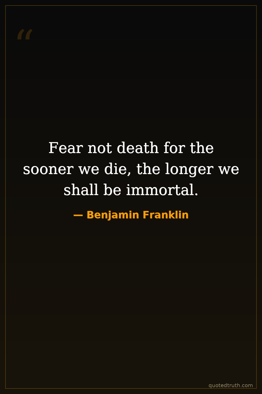 Fear not death for the sooner we die, the longer we shall be immortal.