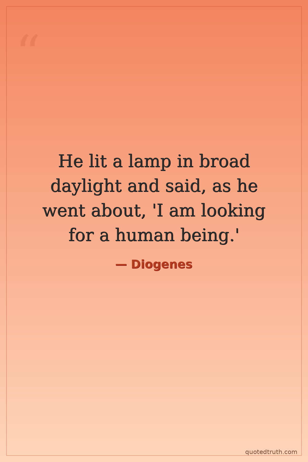 He lit a lamp in broad daylight and said, as he went about, 'I am looking for a human being.'