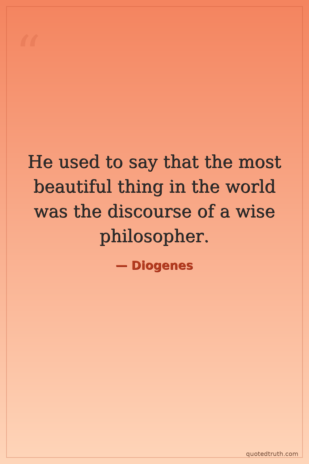 He used to say that the most beautiful thing in the world was the discourse of a wise philosopher.