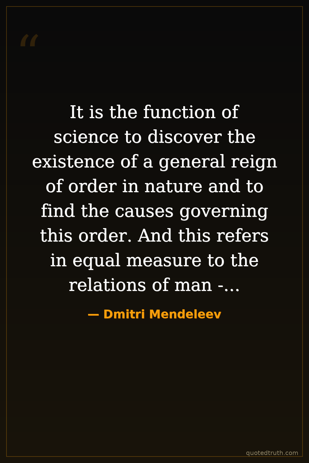 It is the function of science to discover the existence of a general reign of order in nature and to find the causes governing this order. And this refers in equal measure to the relations of man - social and political - and to the entire universe as a whole.