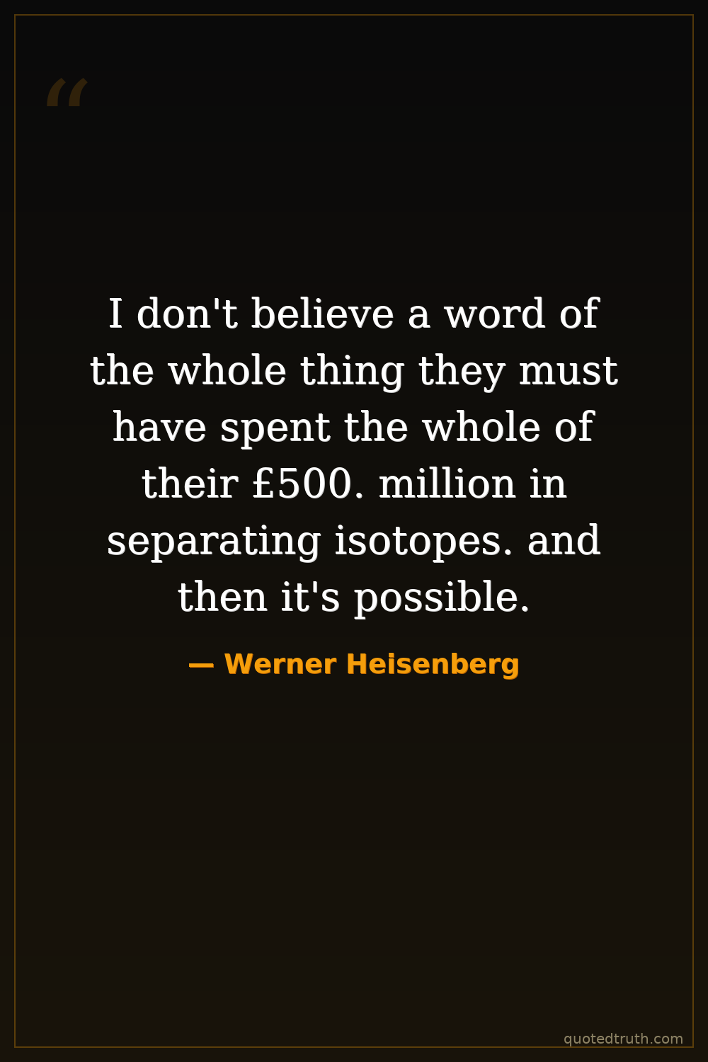 I don't believe a word of the whole thing they must have spent the whole of their £500. million in separating isotopes. and then it's possible.