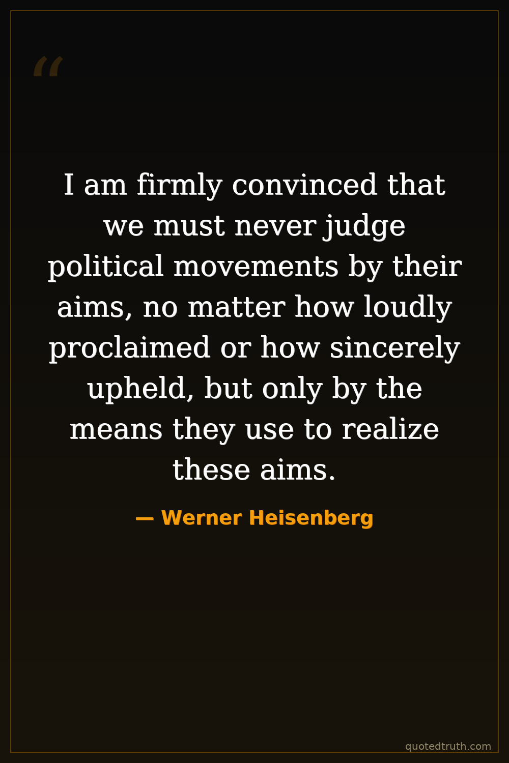 I am firmly convinced that we must never judge political movements by their aims, no matter how loudly proclaimed or how sincerely upheld, but only by the means they use to realize these aims.