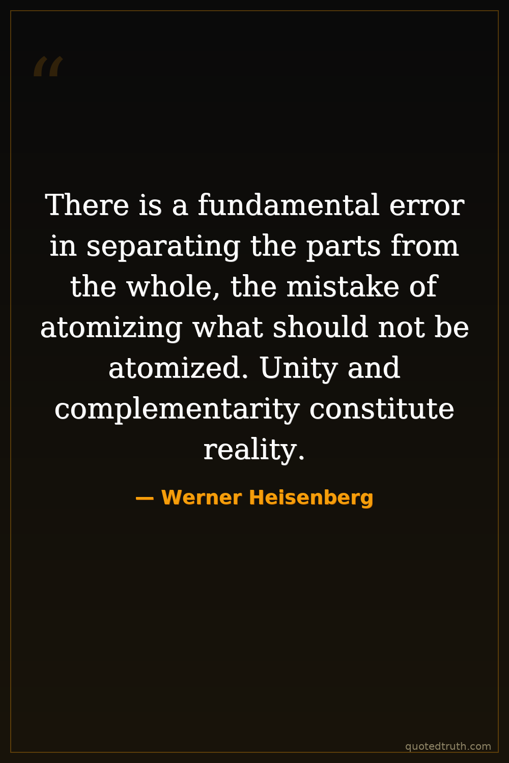 There is a fundamental error in separating the parts from the whole, the mistake of atomizing what should not be atomized. Unity and complementarity constitute reality.
