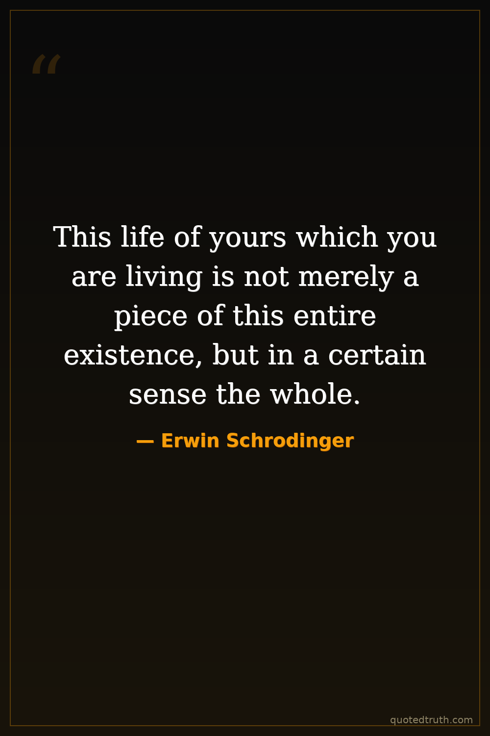 This life of yours which you are living is not merely a piece of this entire existence, but in a certain sense the whole.