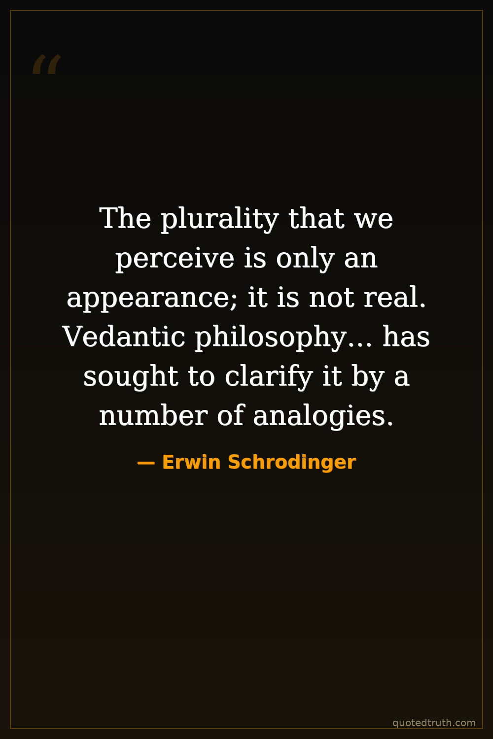 The plurality that we perceive is only an appearance; it is not real. Vedantic philosophy... has sought to clarify it by a number of analogies.