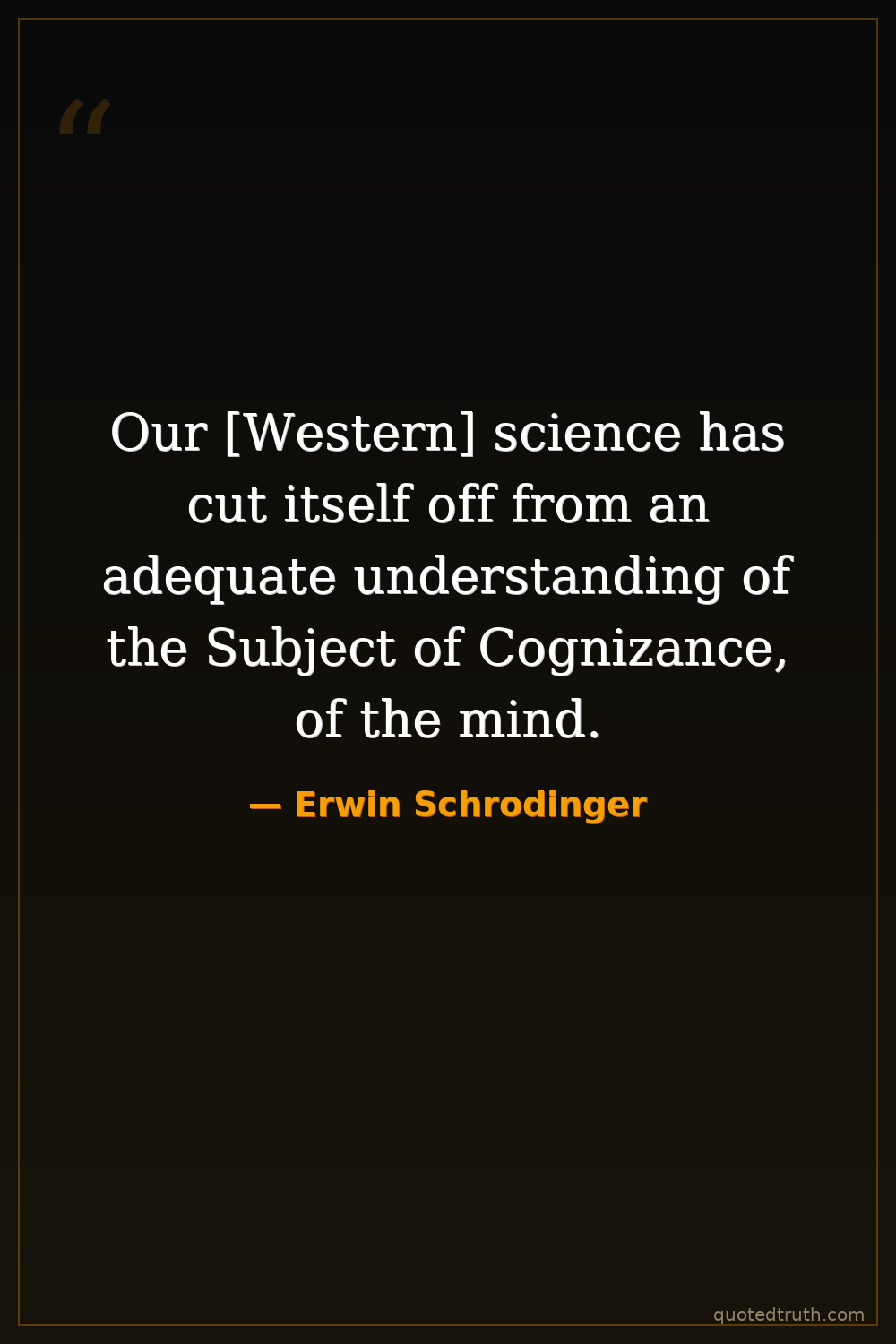Our [Western] science has cut itself off from an adequate understanding of the Subject of Cognizance, of the mind.