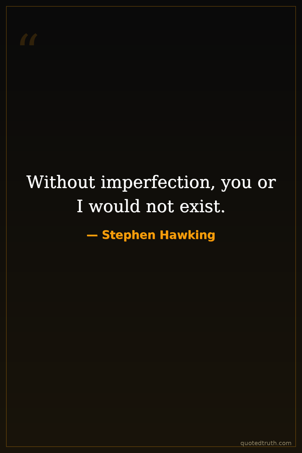 Without imperfection, you or I would not exist.