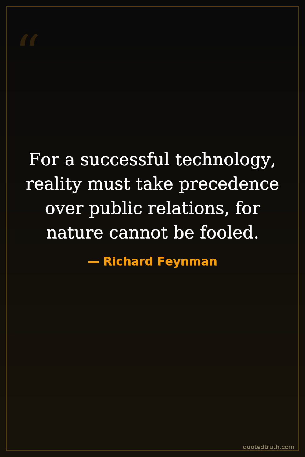 For a successful technology, reality must take precedence over public relations, for nature cannot be fooled.