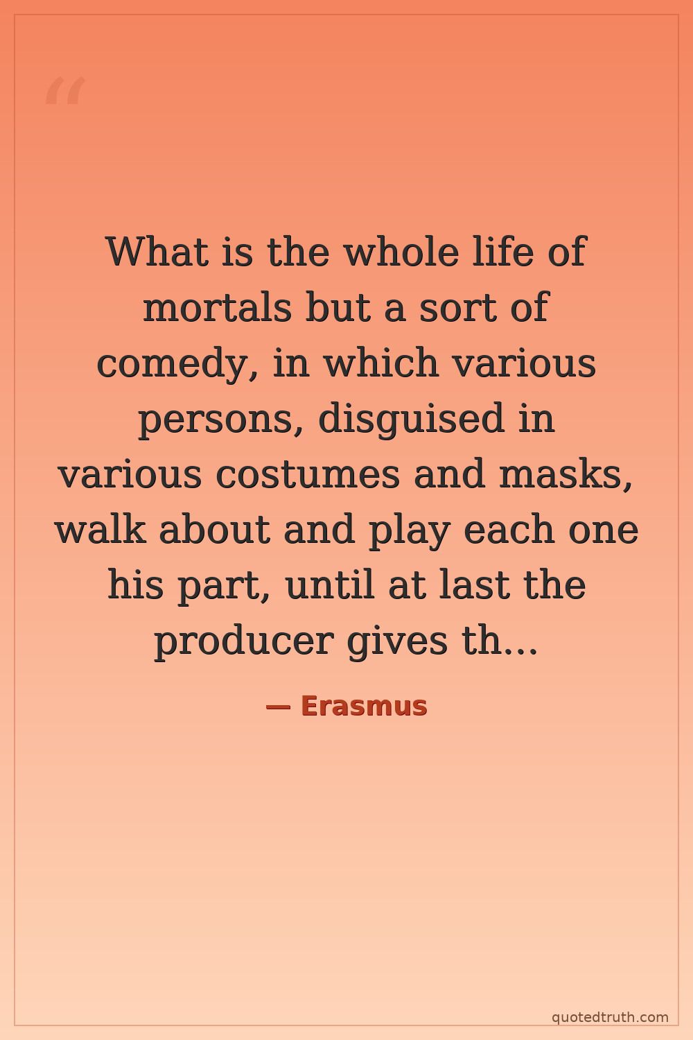 What is the whole life of mortals but a sort of comedy, in which various persons, disguised in various costumes and masks, walk about and play each one his part, until at last the producer gives the sign for them to leave the stage?