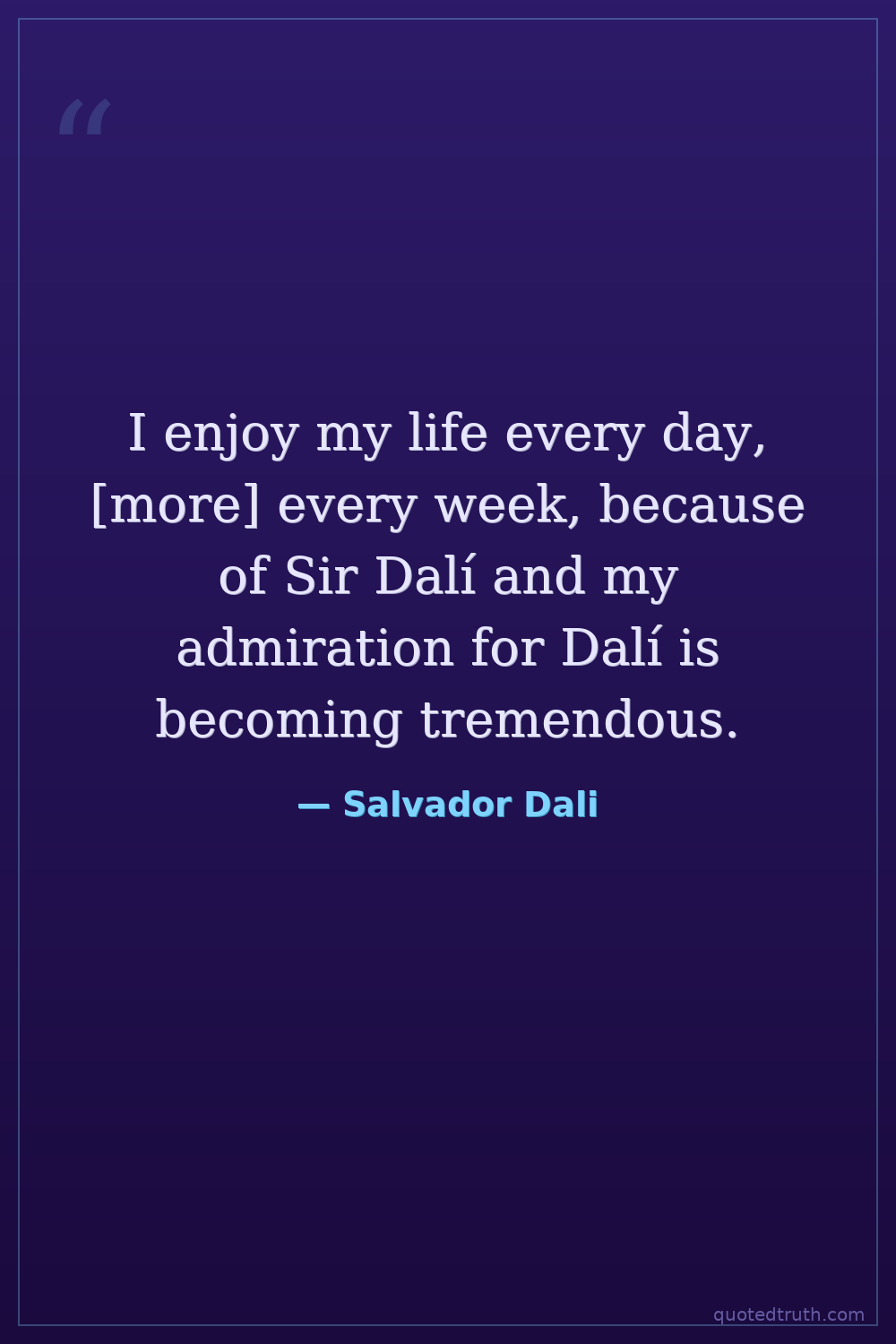 I enjoy my life every day, [more] every week, because of Sir Dalí and my admiration for Dalí is becoming tremendous.