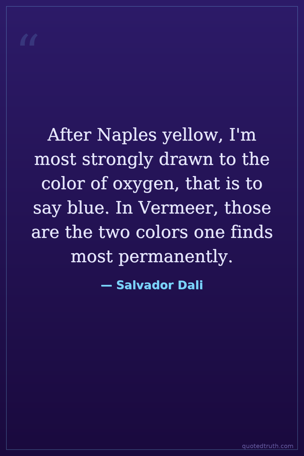 After Naples yellow, I'm most strongly drawn to the color of oxygen, that is to say blue. In Vermeer, those are the two colors one finds most permanently.