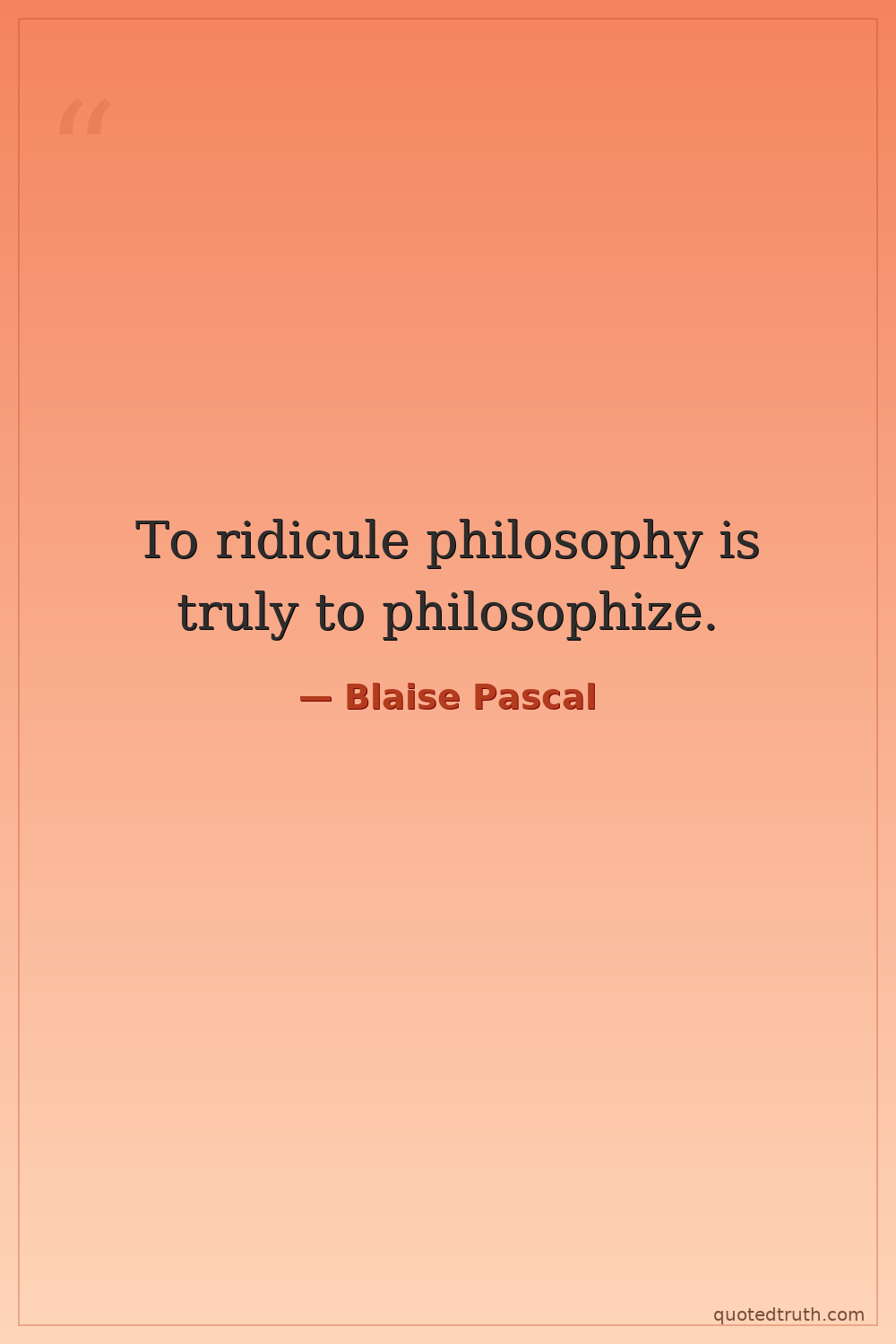 To ridicule philosophy is truly to philosophize.