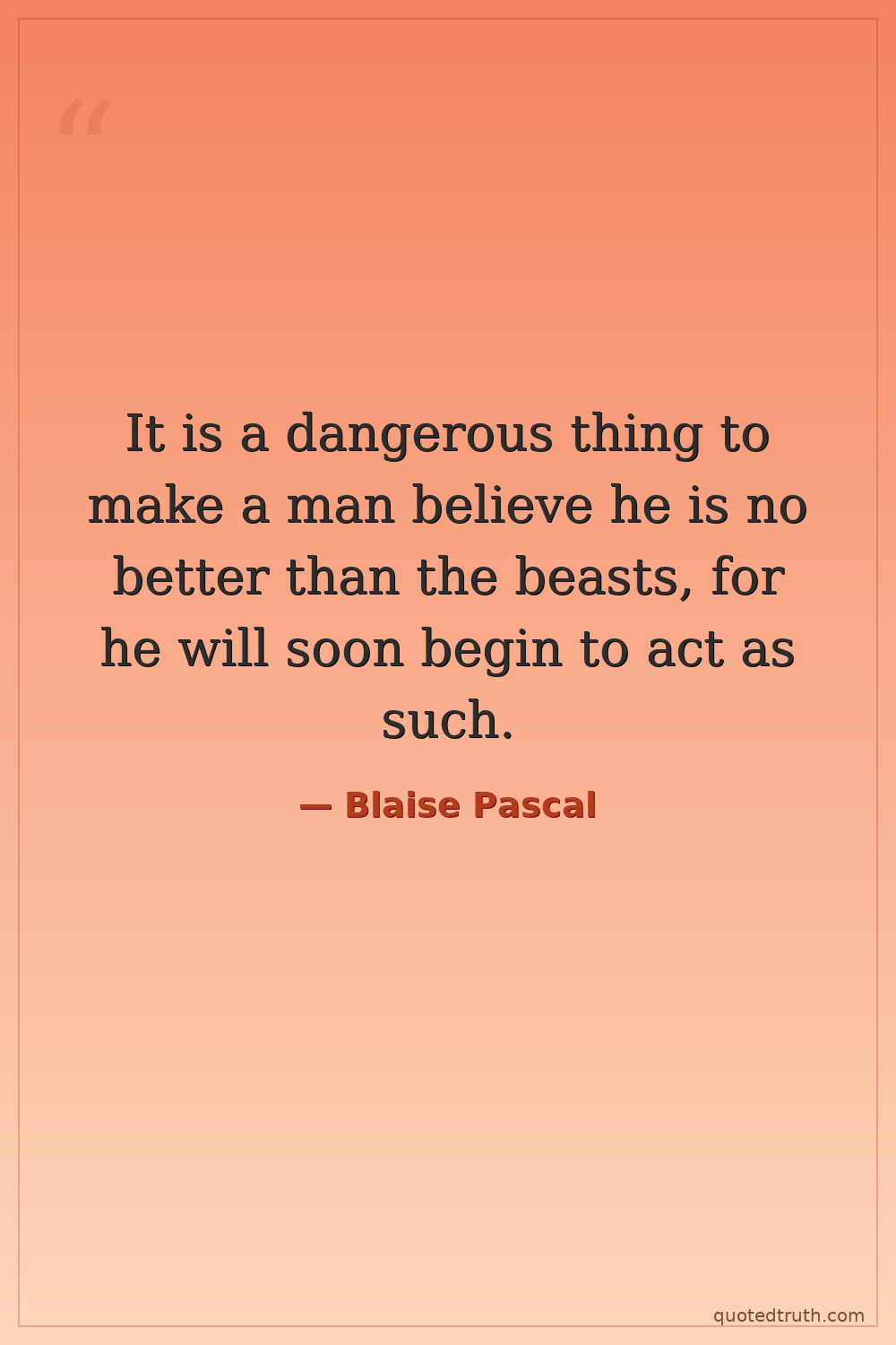 It is a dangerous thing to make a man believe he is no better than the beasts, for he will soon begin to act as such.