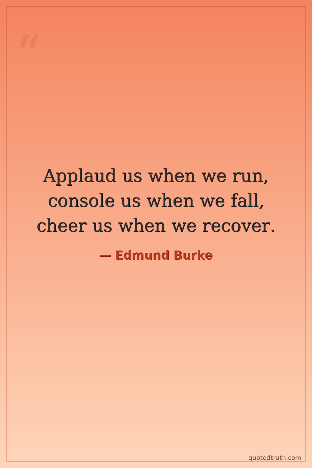 Applaud us when we run, console us when we fall, cheer us when we recover.