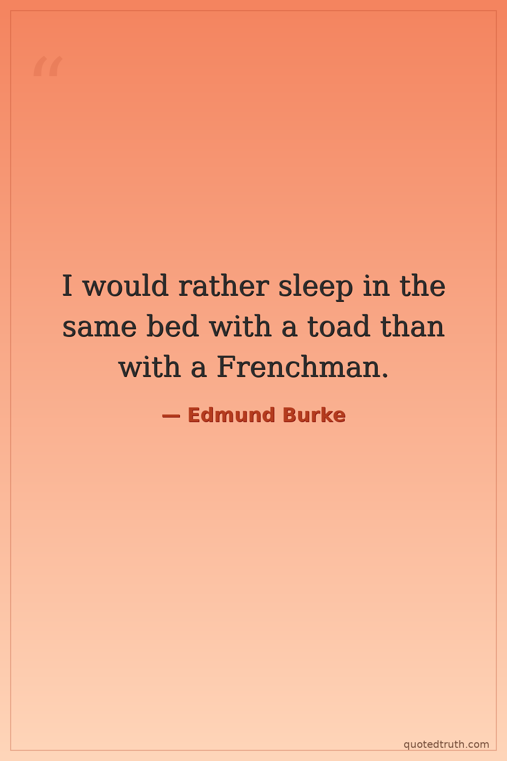 I would rather sleep in the same bed with a toad than with a Frenchman.