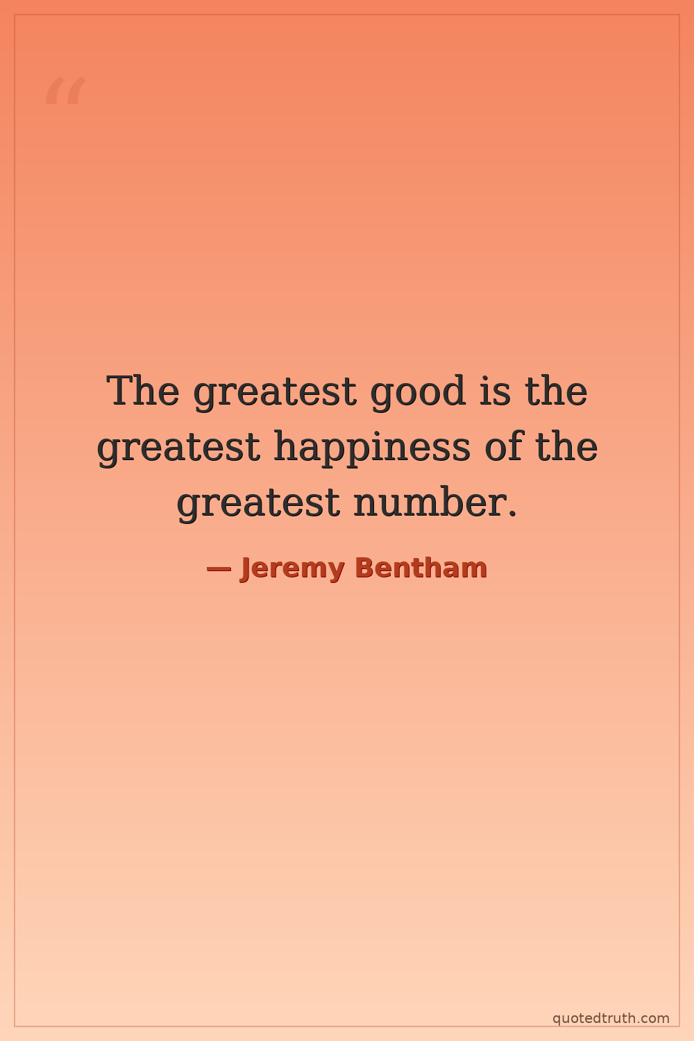 The greatest good is the greatest happiness of the greatest number.