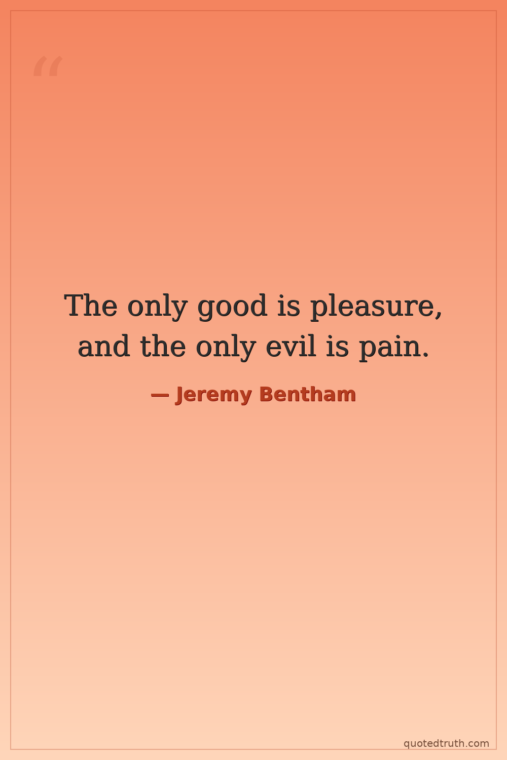"Nature has placed mankind under the governance of two sovereign masters, pain and pleasure. It is for them alone to point out what we ought to do, as well as to determine what we shall do."
