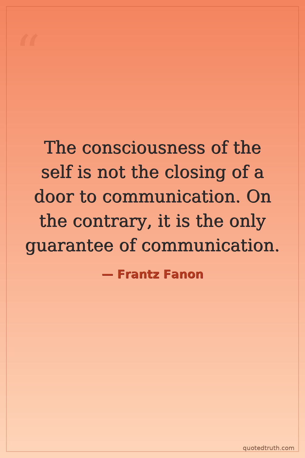 The consciousness of the self is not the closing of a door to communication. On the contrary, it is the only guarantee of communication.