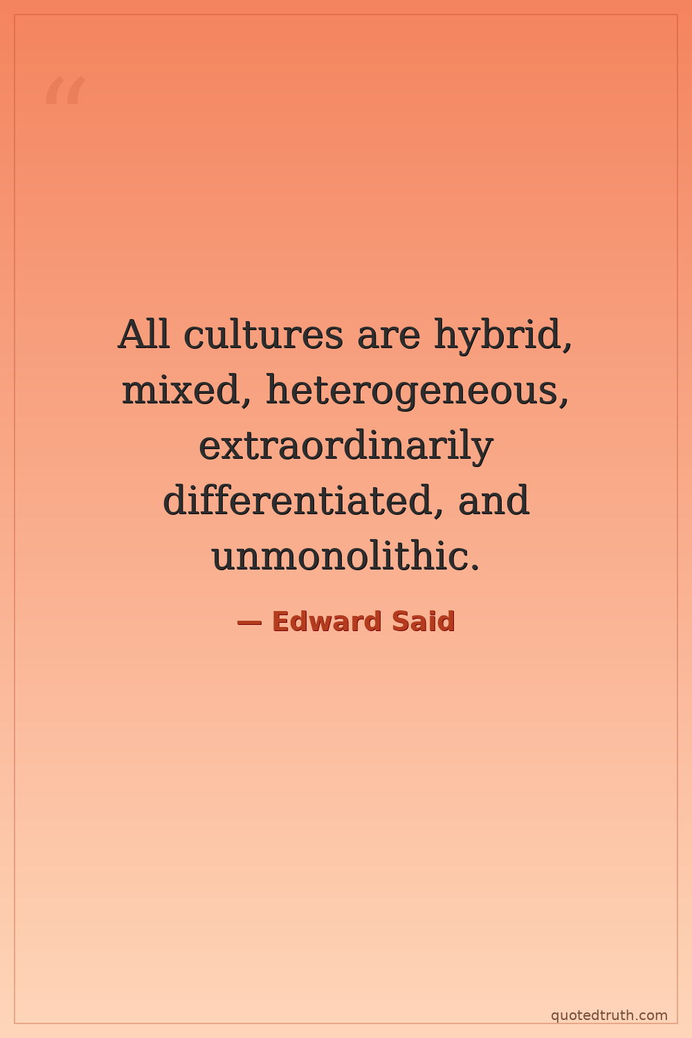 All cultures are hybrid, mixed, heterogeneous, extraordinarily differentiated, and unmonolithic.