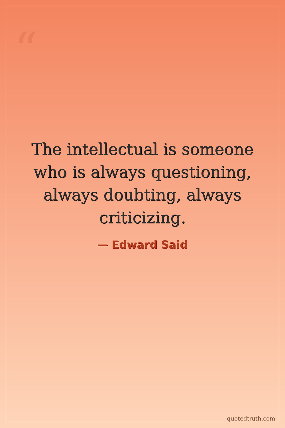 The intellectual is someone who is always questioning, always doubting, always criticizing.