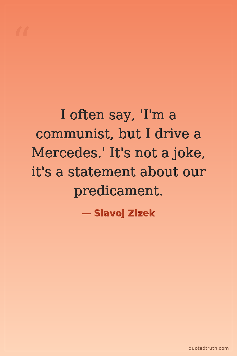 I often say, 'I'm a communist, but I drive a Mercedes.' It's not a joke, it's a statement about our predicament.