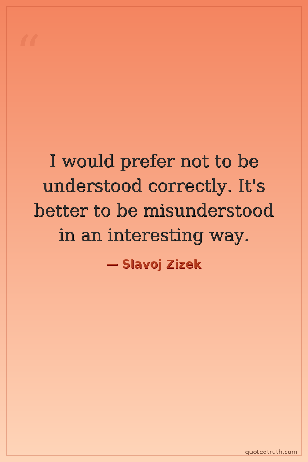 I would prefer not to be understood correctly. It's better to be misunderstood in an interesting way.