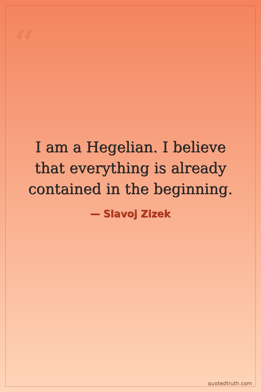 I am a Hegelian. I believe that everything is already contained in the beginning.