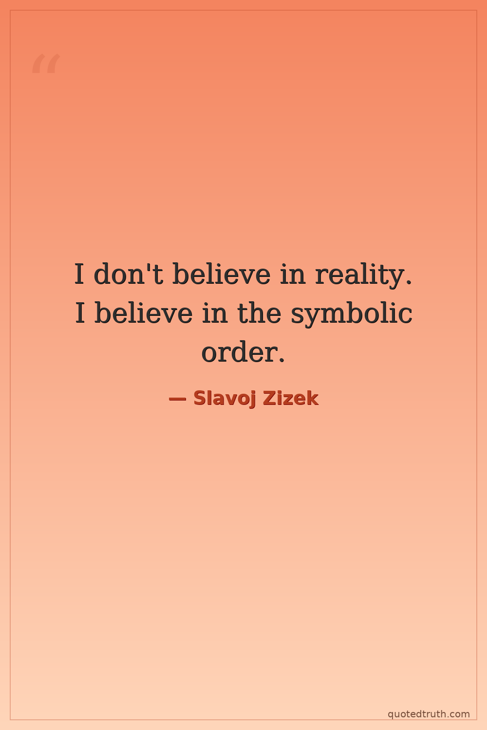 I don't believe in reality. I believe in the symbolic order.