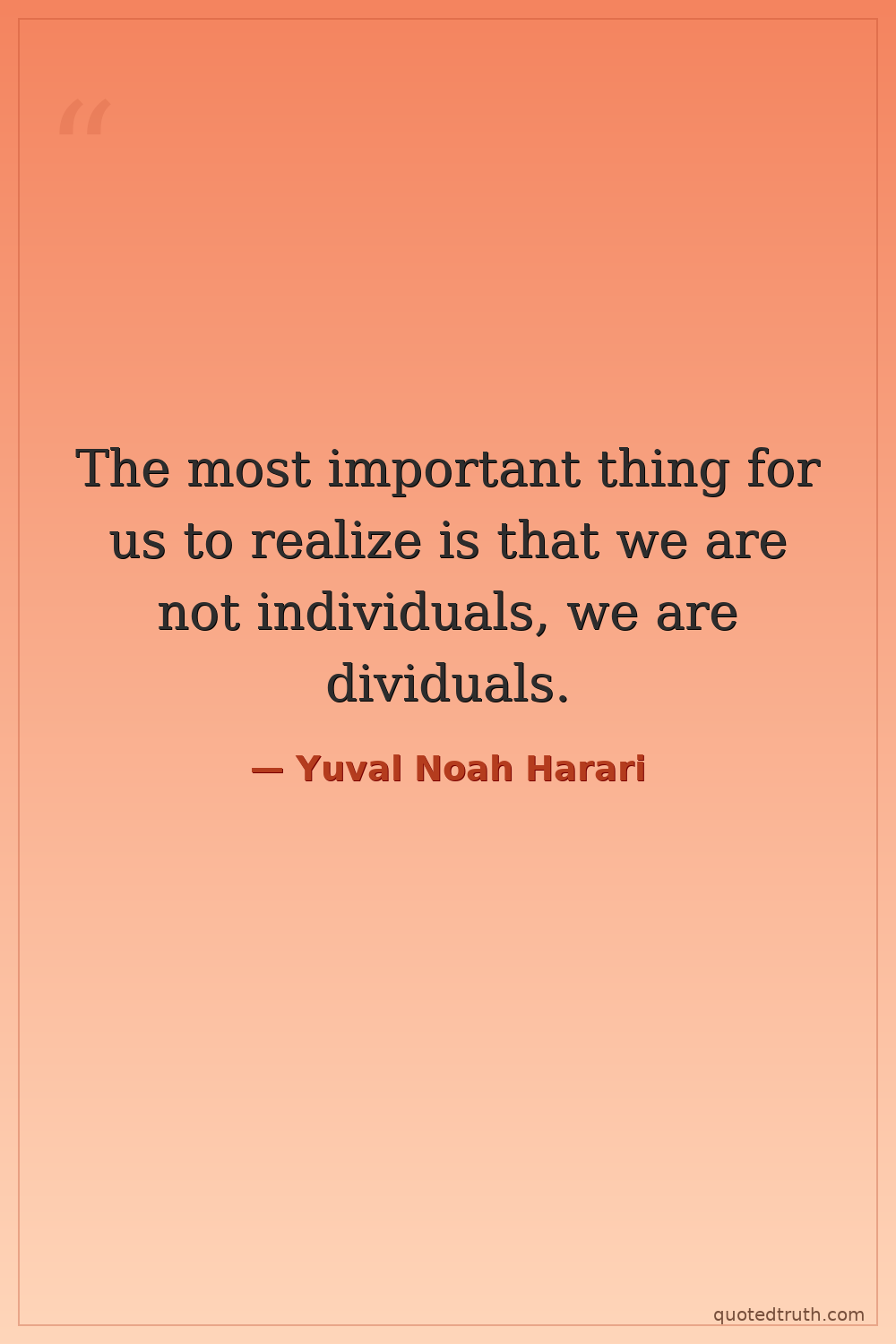 The most important thing for us to realize is that we are not individuals, we are dividuals.