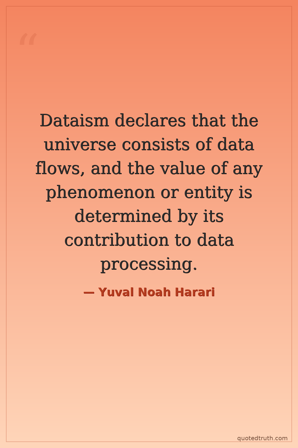 Dataism declares that the universe consists of data flows, and the value of any phenomenon or entity is determined by its contribution to data processing.