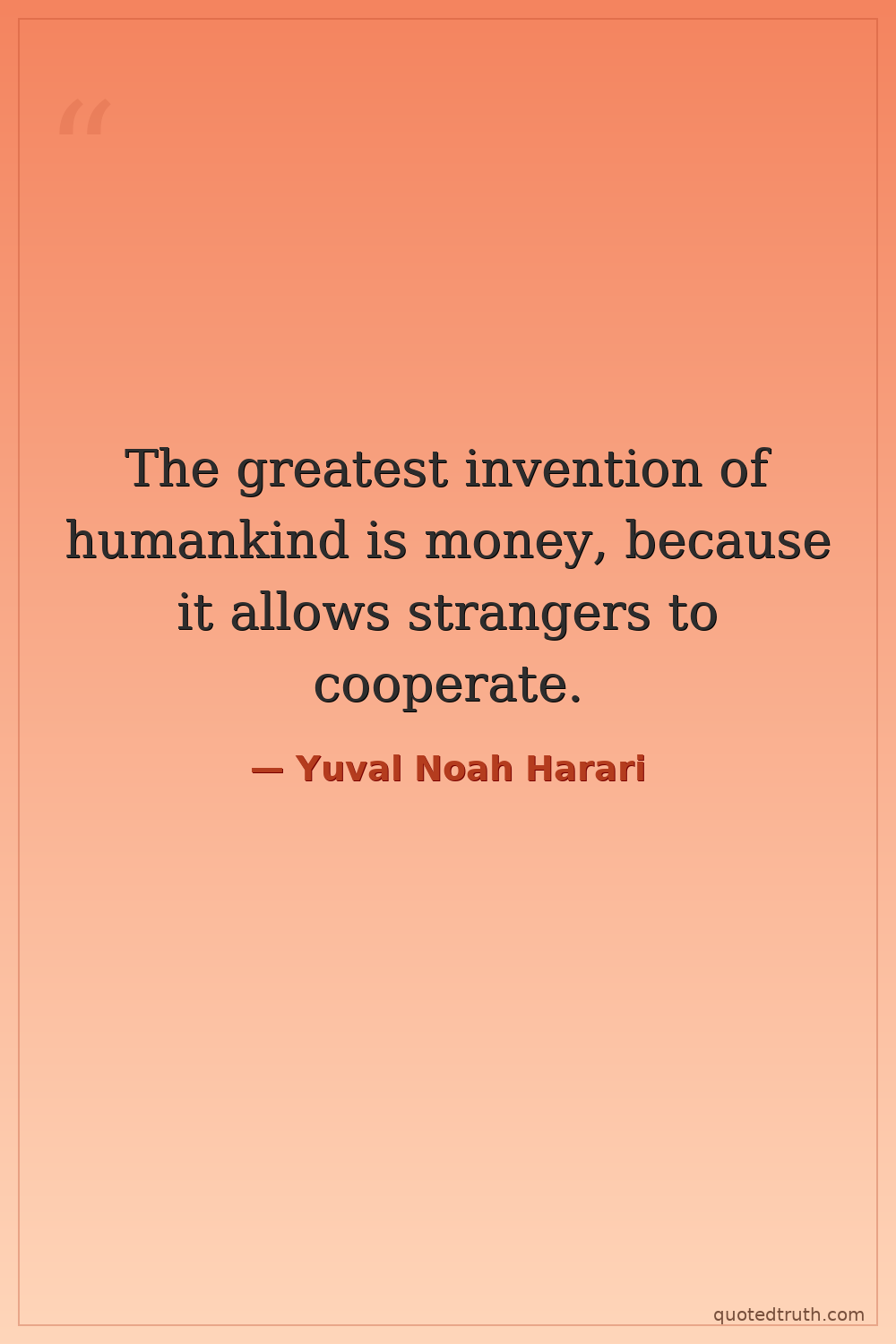 The greatest invention of humankind is money, because it allows strangers to cooperate.