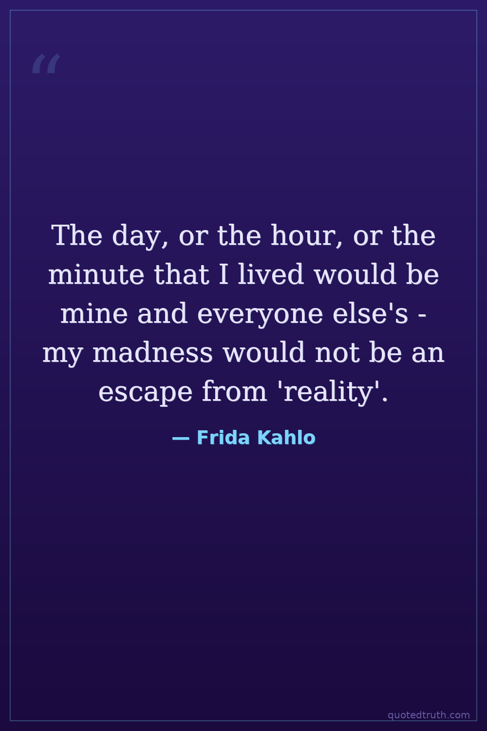 The day, or the hour, or the minute that I lived would be mine and everyone else's - my madness would not be an escape from 'reality'.