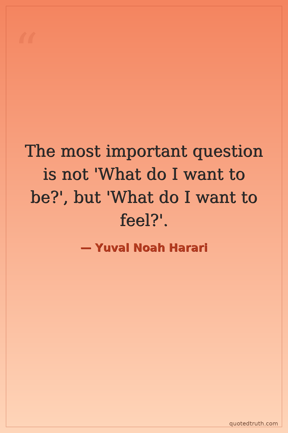 The most important question is not 'What do I want to be?', but 'What do I want to feel?'.