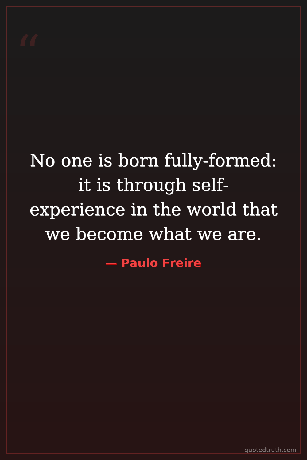 No one is born fully-formed: it is through self-experience in the world that we become what we are.