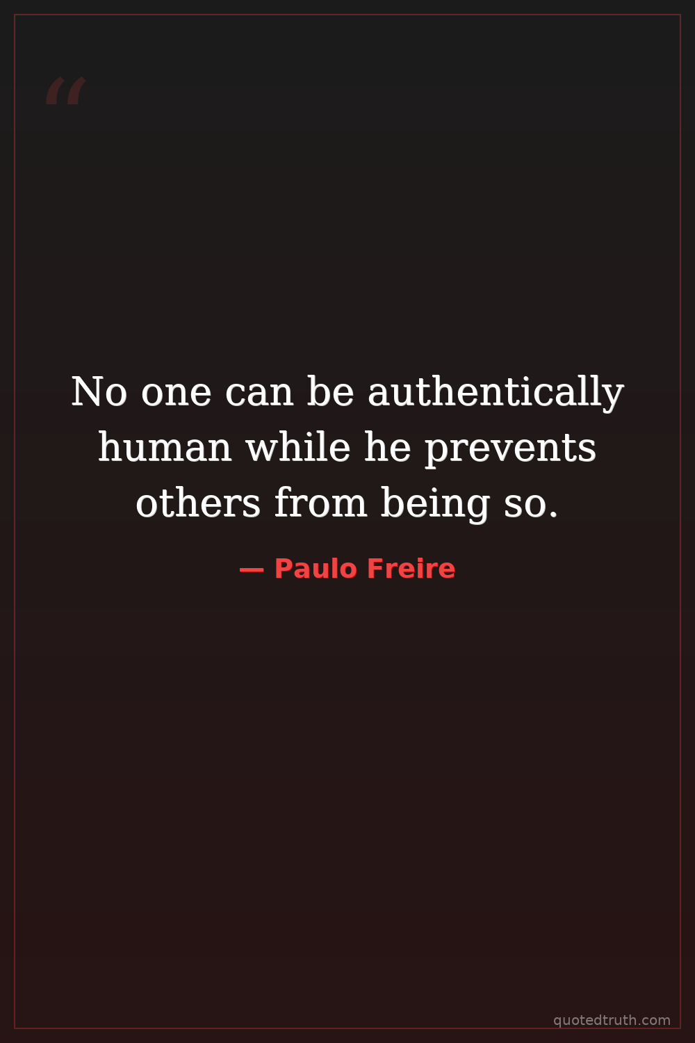 No one can be authentically human while he prevents others from being so.