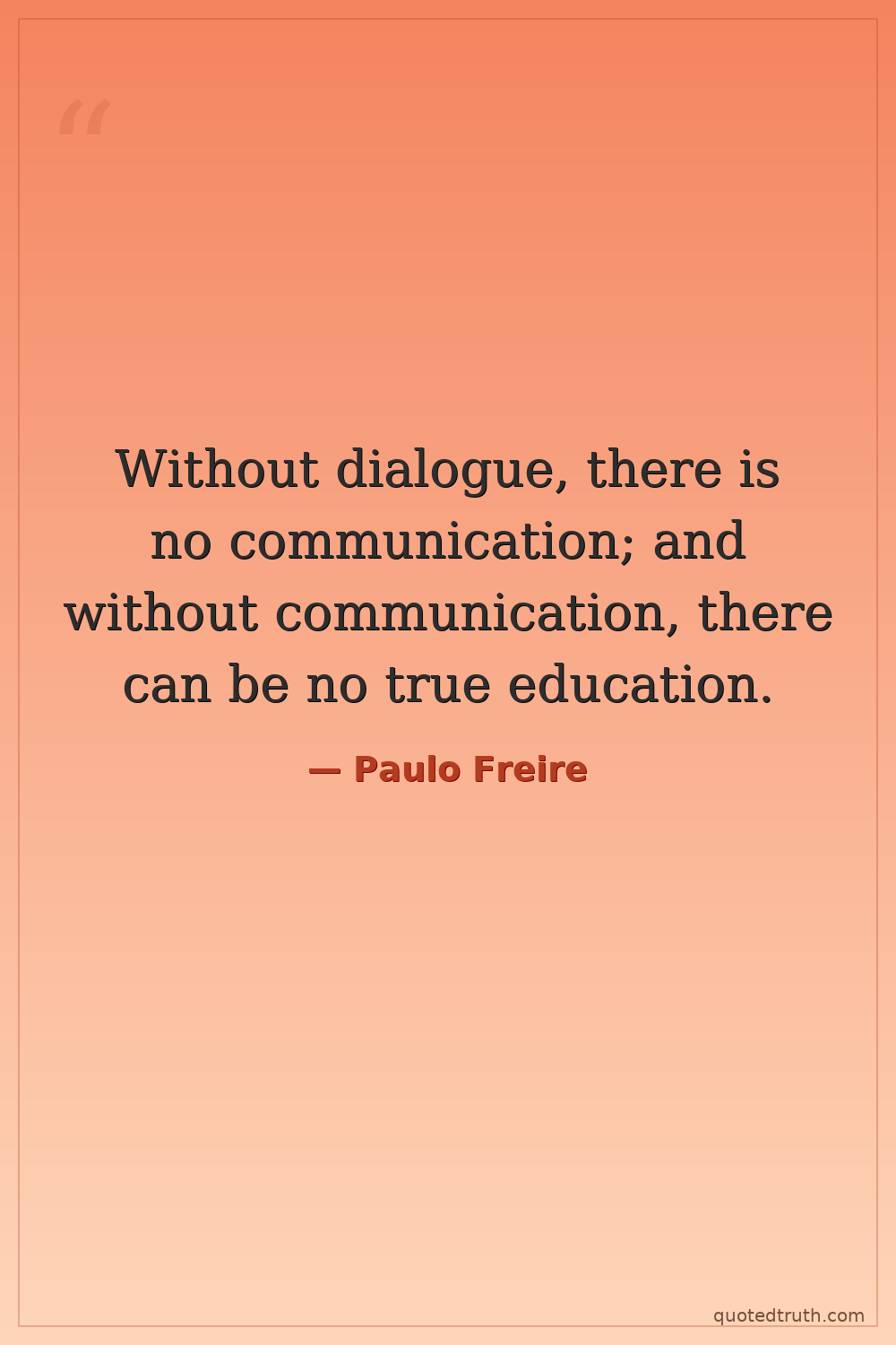 Without dialogue, there is no communication; and without communication, there can be no true education.