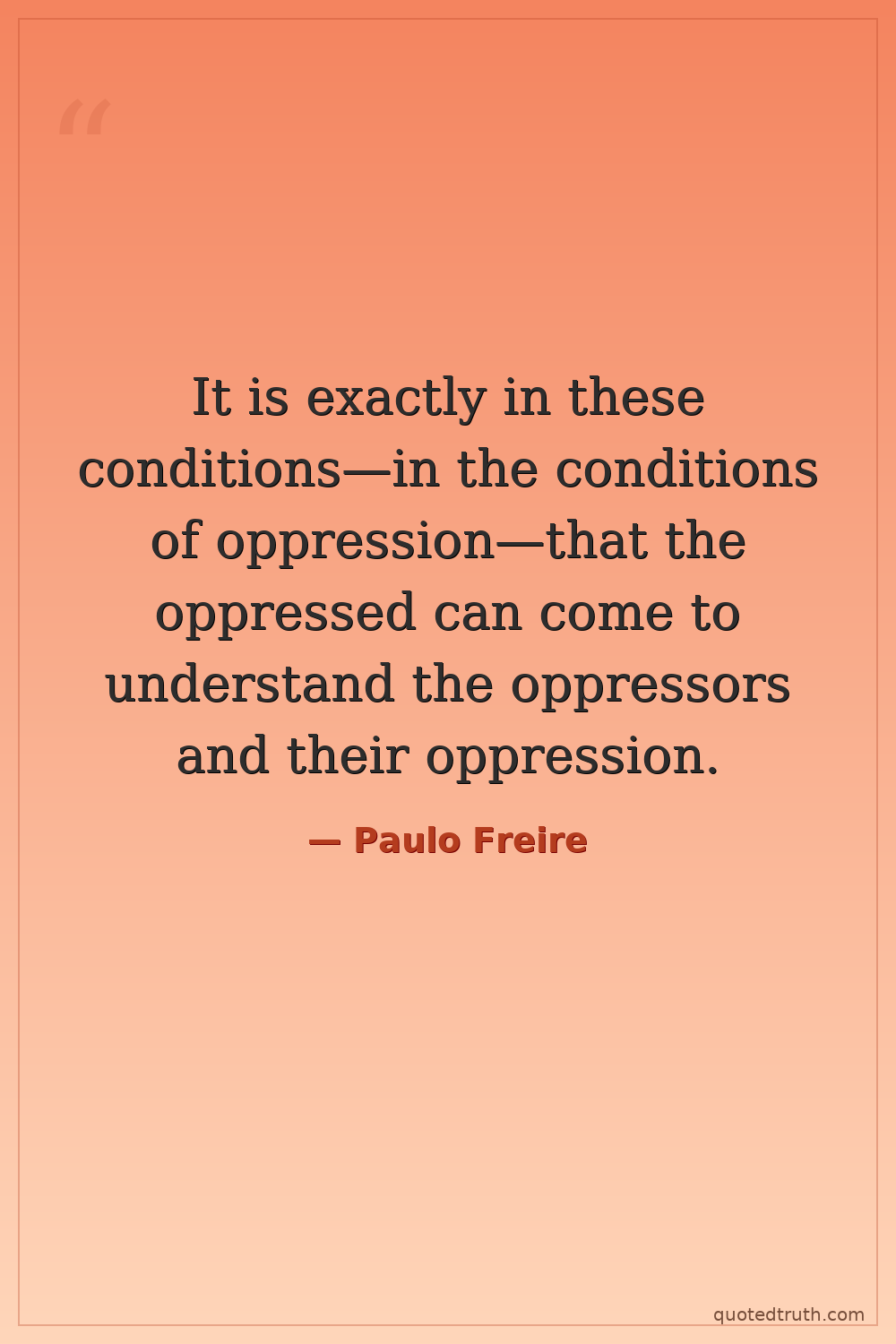 It is exactly in these conditions—in the conditions of oppression—that the oppressed can come to understand the oppressors and their oppression.