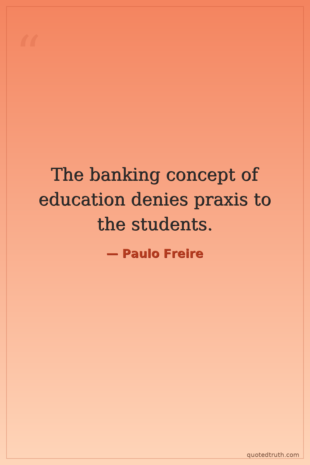 Humorous"The object of the banking concept of education is to turn them into automatons—the minimization of their creative power."
