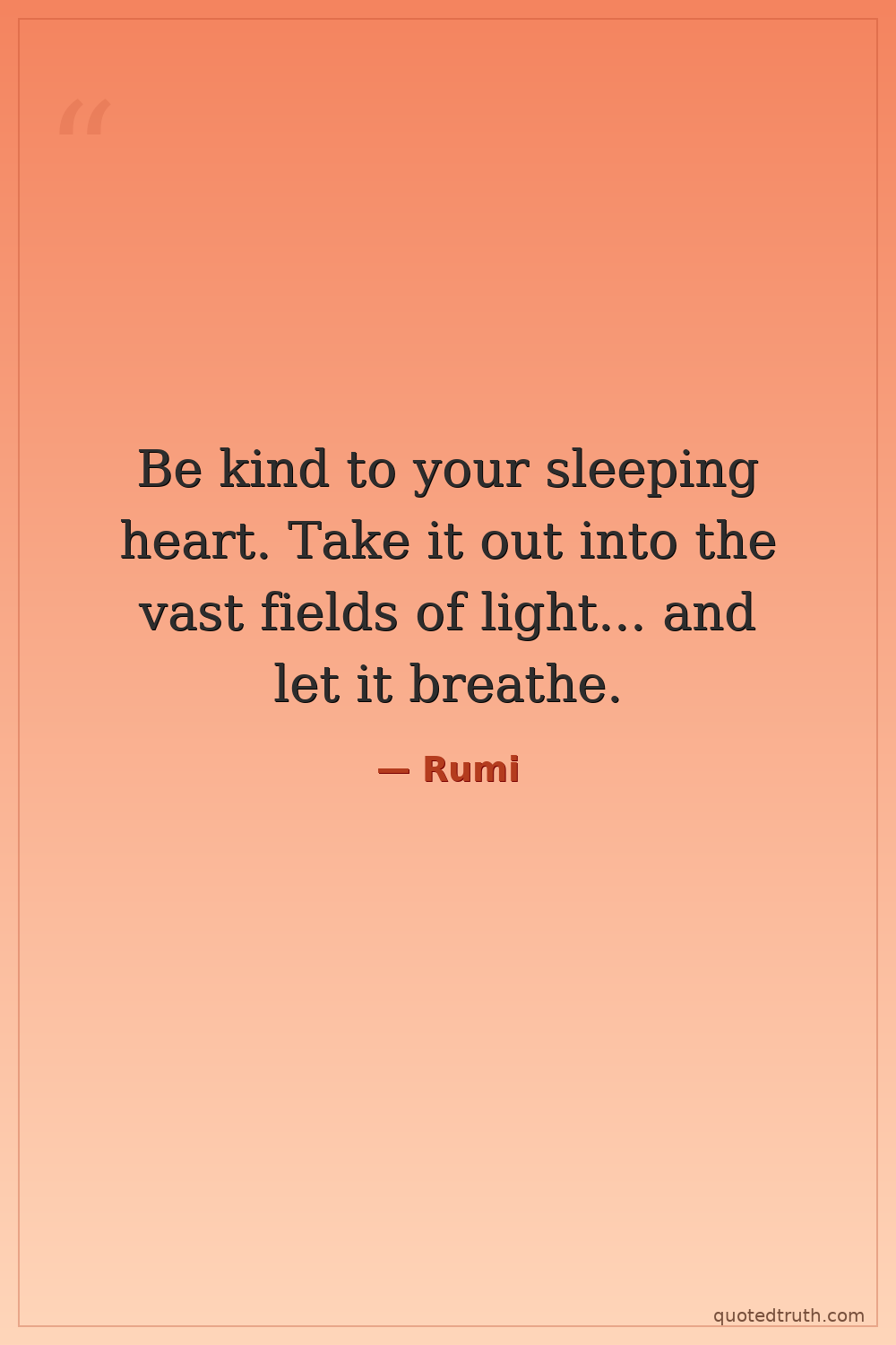 Be kind to your sleeping heart. Take it out into the vast fields of light... and let it breathe.