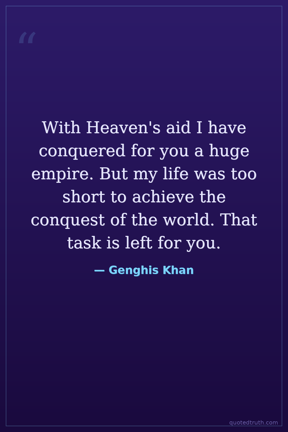 With Heaven's aid I have conquered for you a huge empire. But my life was too short to achieve the conquest of the world. That task is left for you.