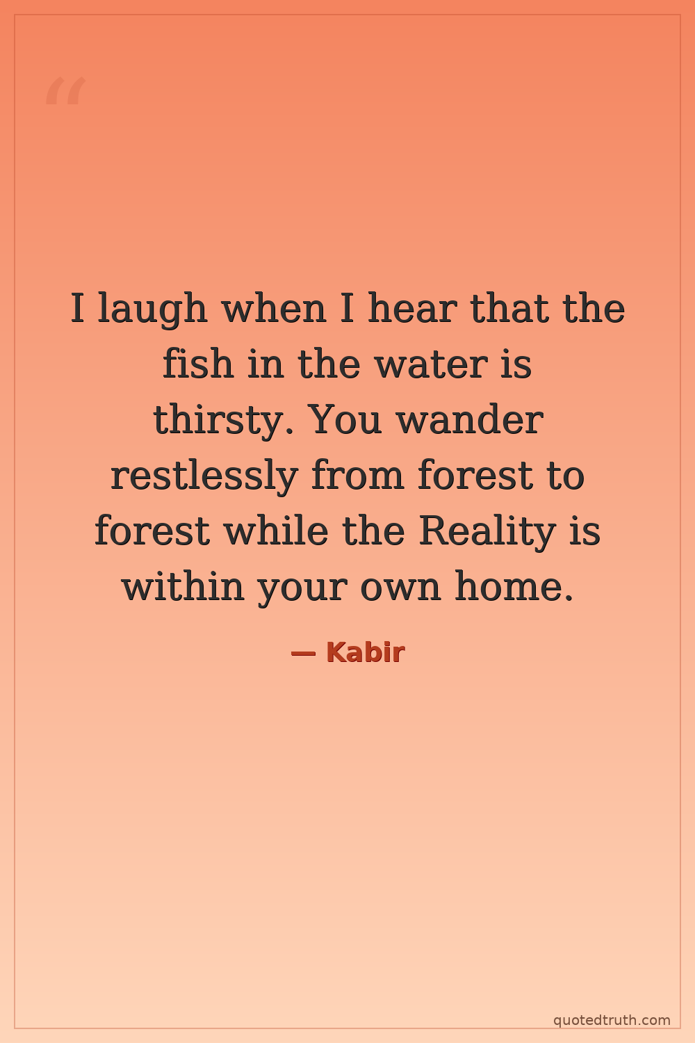I laugh when I hear that the fish in the water is thirsty. You wander restlessly from forest to forest while the Reality is within your own home.