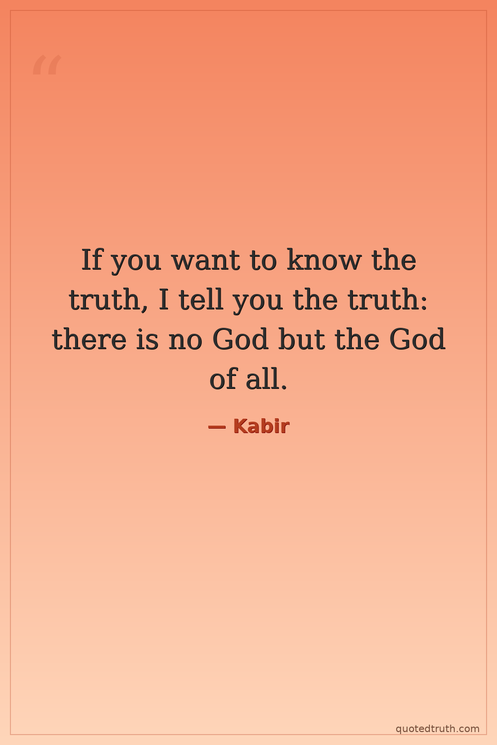If you want to know the truth, I tell you the truth: there is no God but the God of all.