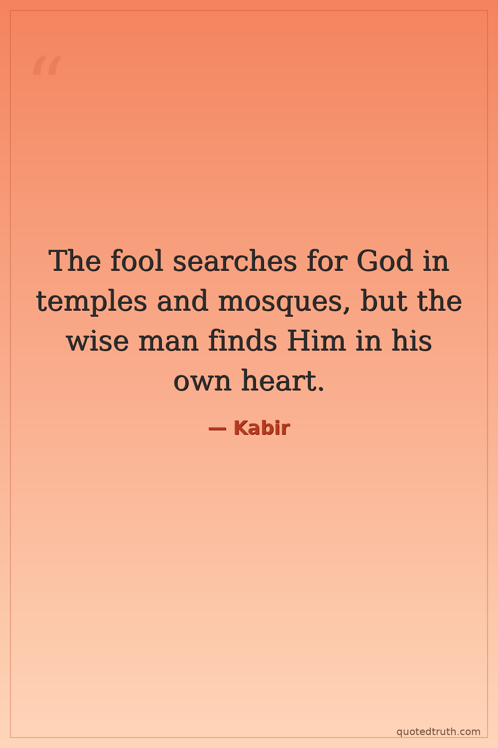 The fool searches for God in temples and mosques, but the wise man finds Him in his own heart.