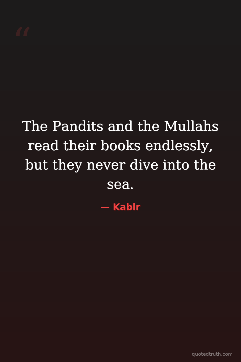 The Pandits and the Mullahs read their books endlessly, but they never dive into the sea.
