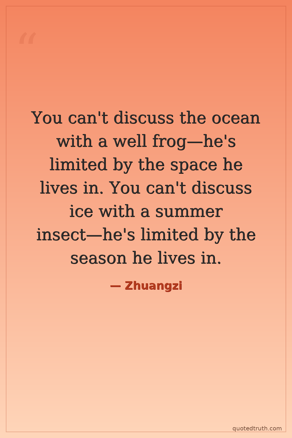 You can't discuss the ocean with a well frog—he's limited by the space he lives in. You can't discuss ice with a summer insect—he's limited by the season he lives in.