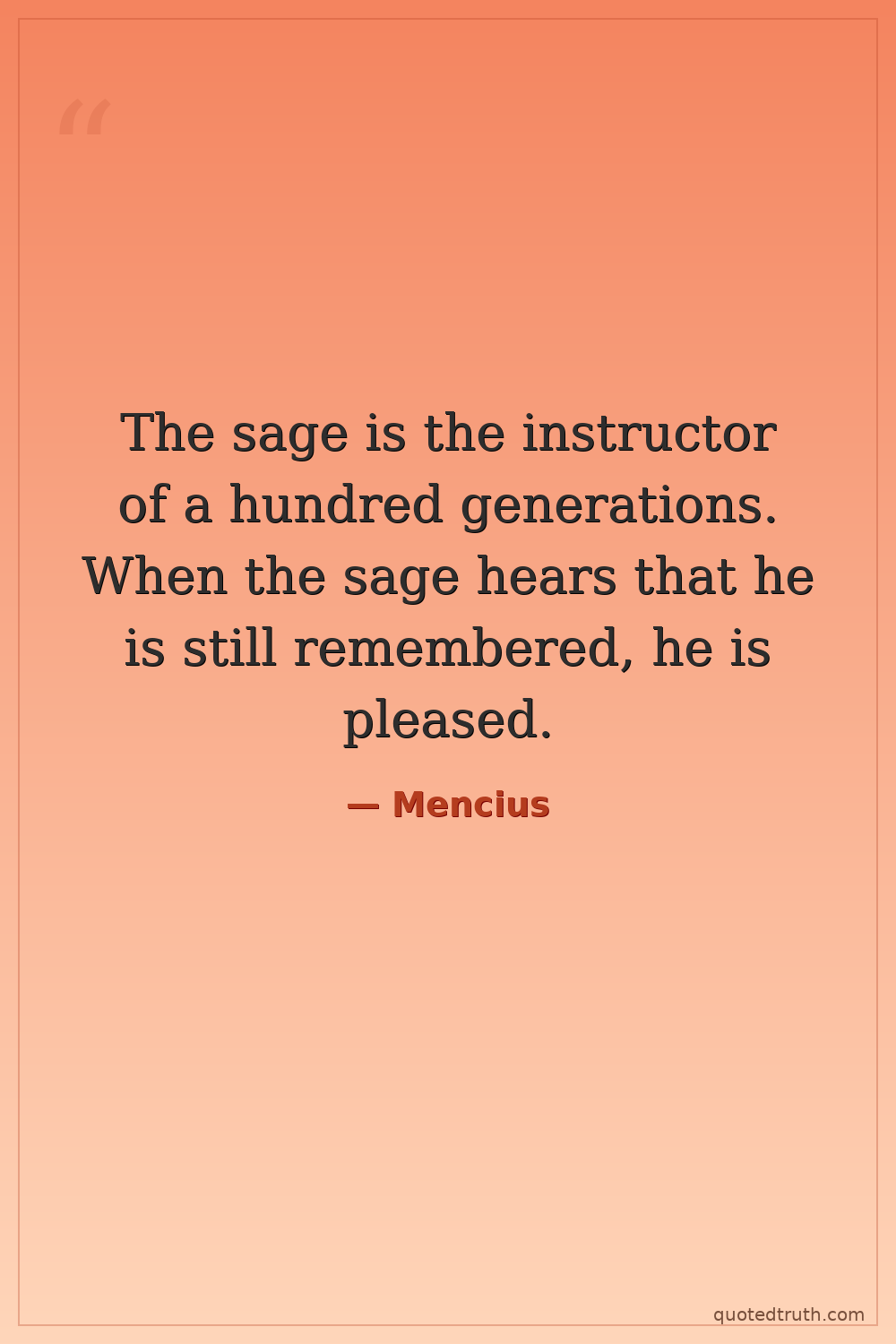 The sage is the instructor of a hundred generations. When the sage hears that he is still remembered, he is pleased.