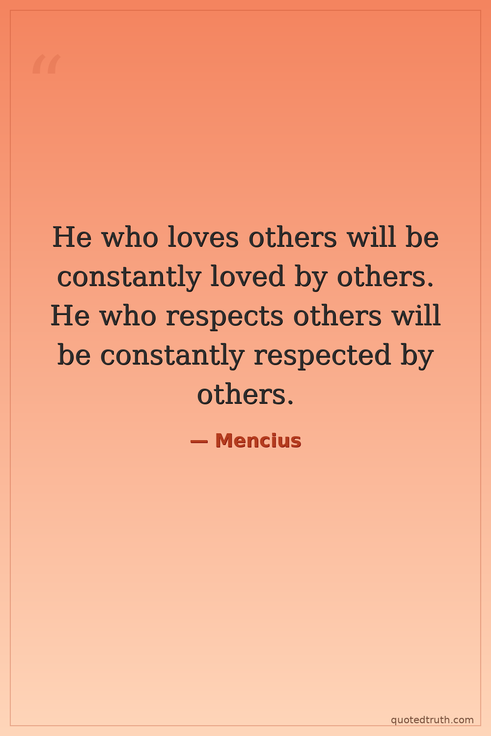 He who loves others will be constantly loved by others. He who respects others will be constantly respected by others.